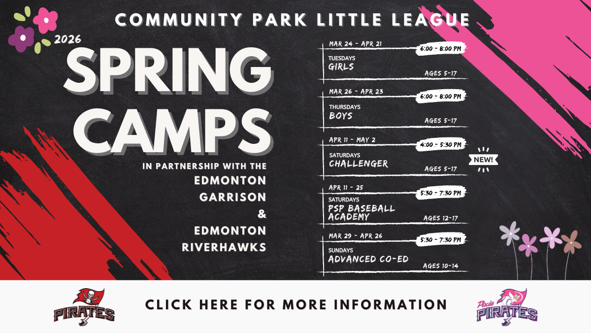 We also offer the most established all-girl baseball teams in Edmonton, AB with our Pixie Pirates teams. You can find their website here: www.pixiepiratesbaseball.ca