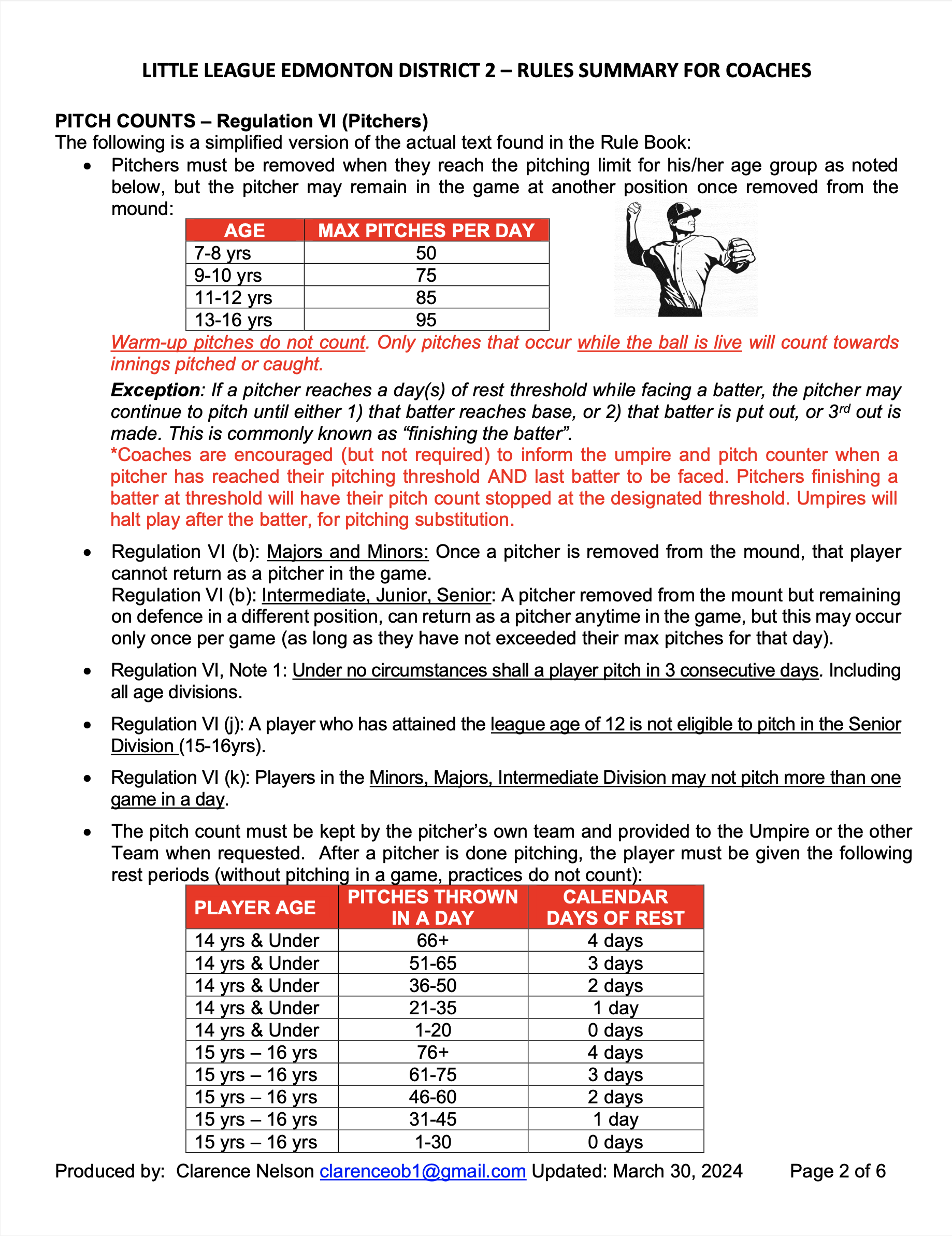 Please find a copy of the 2024 District 2 Pitch Count Rules as well as CPLL Pitch Count Log and Pitcher Eligibility Tracking Form below.